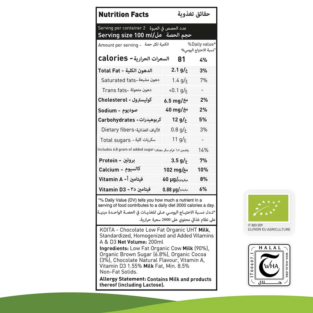 Koita KOI005 Organic Milk Chocolate 200ml, Pack of 24 pcs