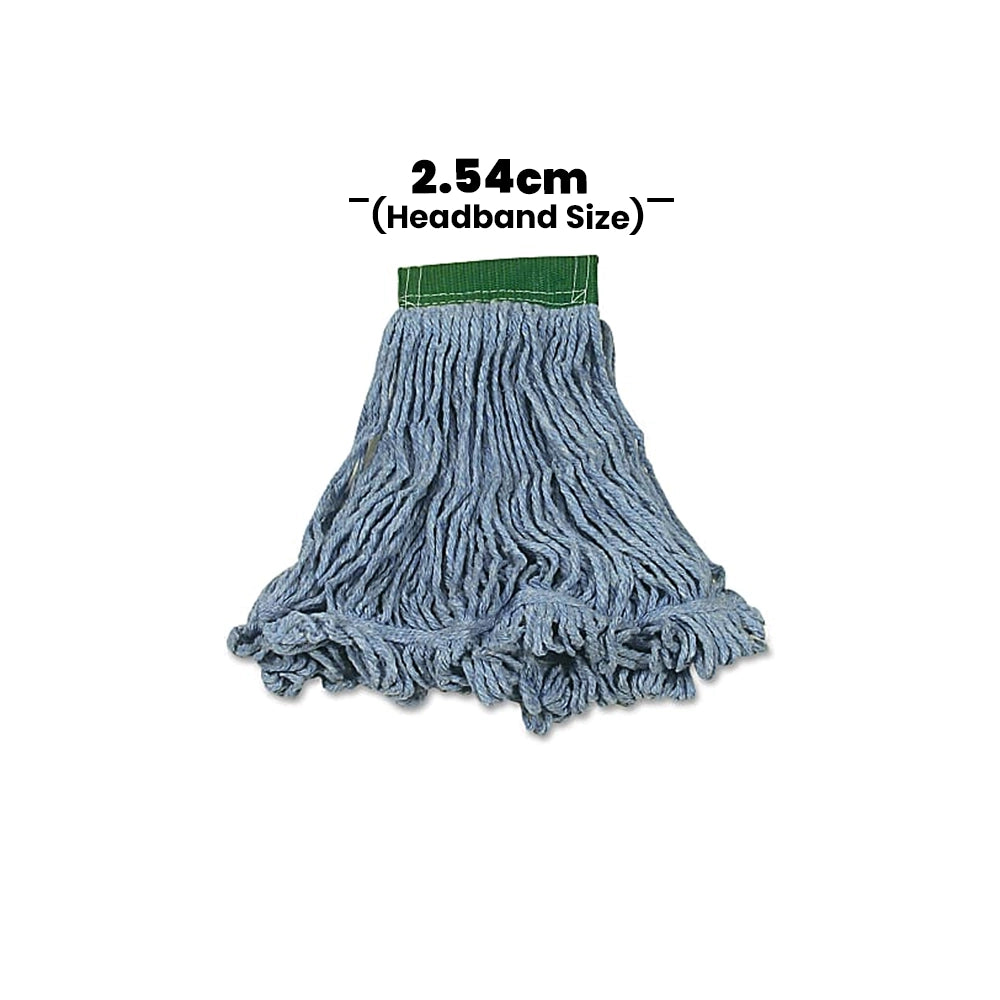 Designed with the hospitality industry in mind, this Rubbermaid 20 Oz Blue Super Stitch Blend Wet Mop features a durable 1" headband for rigorous cleaning tasks. Its superior absorbency and strength make it ideal for efficient floor maintenance, ensuring sparkling results with less effort.
