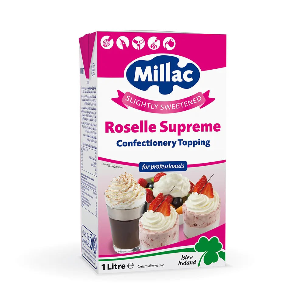 Enhance your culinary creations with the luxurious texture and rich flavor of Millac Roselle Supreme UHT Non-Dairy Whipping Cream. Specifically formulated for the hotels, restaurants, and catering industry, this premium whipping cream offers a versatile solution for a wide range of desserts and dishes. Its long shelf life and stability under different temperatures make it the perfect choice for professional kitchens.