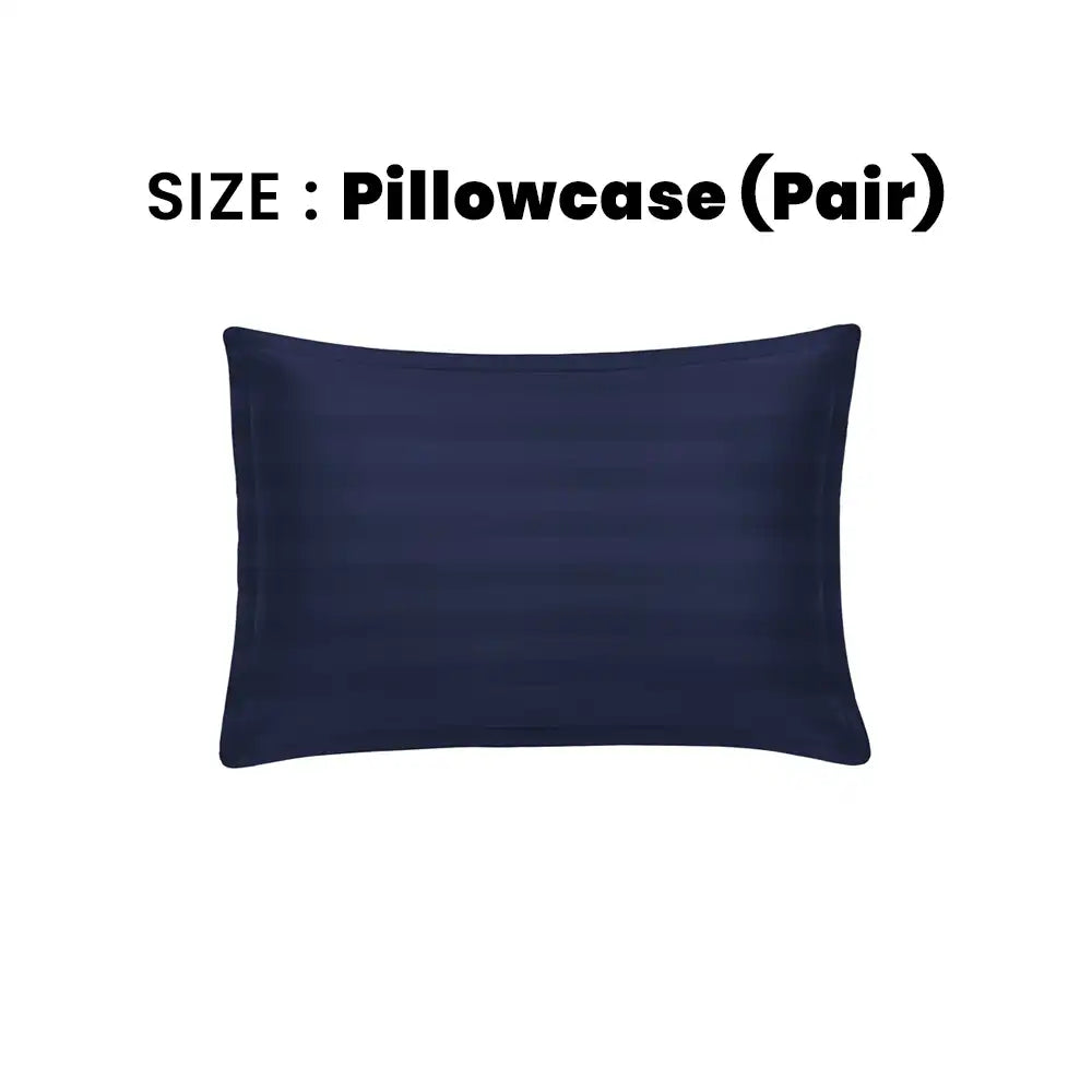 Designed for the discerning hospitality industry, the Eternal Stripes Navy Blue Cotton Pillowcase Pair boasts a luxurious 250 thread count in a sumptuous cotton sateen. It's navy blue hue complements a variety of decor styles, ensuring effortless elegance and a wrinkle-free appearance for pristine room presentations.