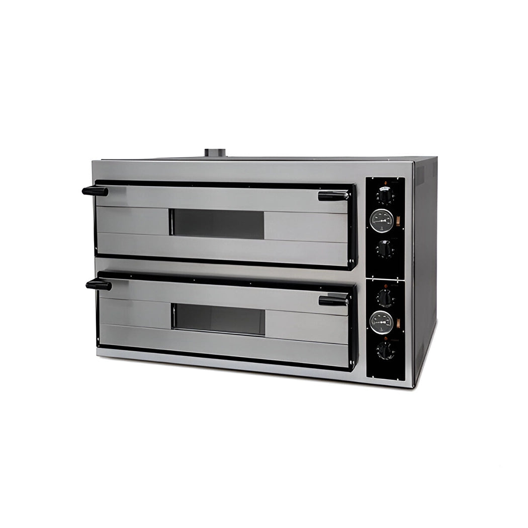 The APACH Double Chamber Pizza Oven provides precise results. This oven is compact in size and weighs a solid at. It performs with a powerful output. Its two chambers measure 100.0x95.4x74.5 cm and can bake (each) equally. The temperatures range from. A must-have in high-demand kitchens.