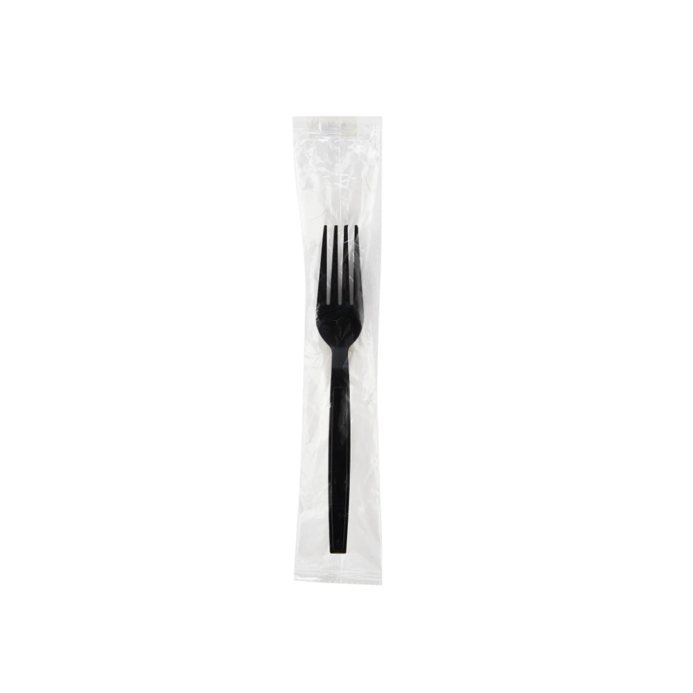 Hotpack Heavy Duty Black Plastic Fork, Individually Wrapped, 2.6x18.5 cm, 500 PCs