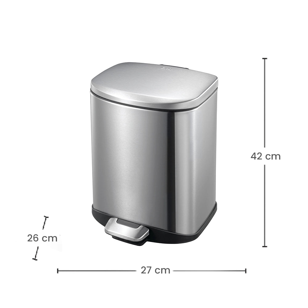 EKO Della Stainless Steel Rectangular Pedal Bin, 12-Liter