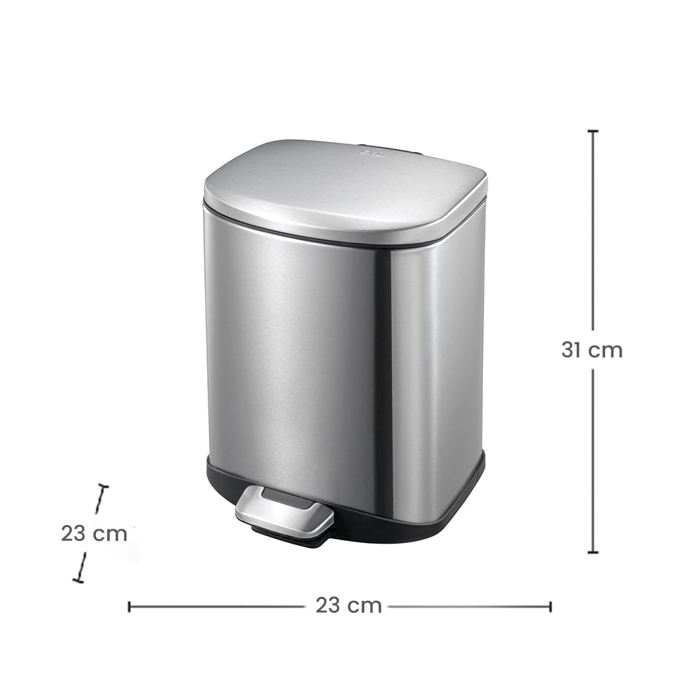 EKO Della Stainless Steel Rectangular Pedal Bin, 6-Liter