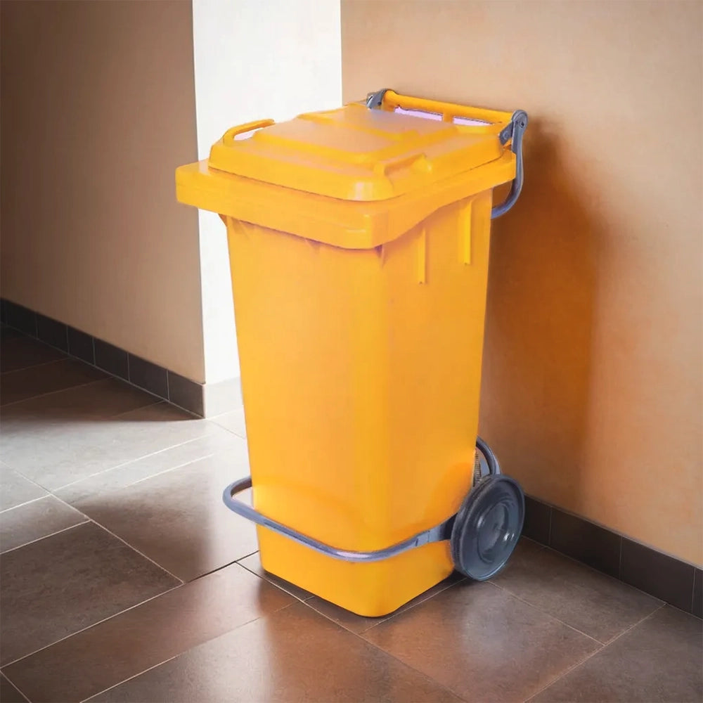 THS RSBIN121 Yellow Plastic Garbage Bin With Wheel And Centre Pedal 120L