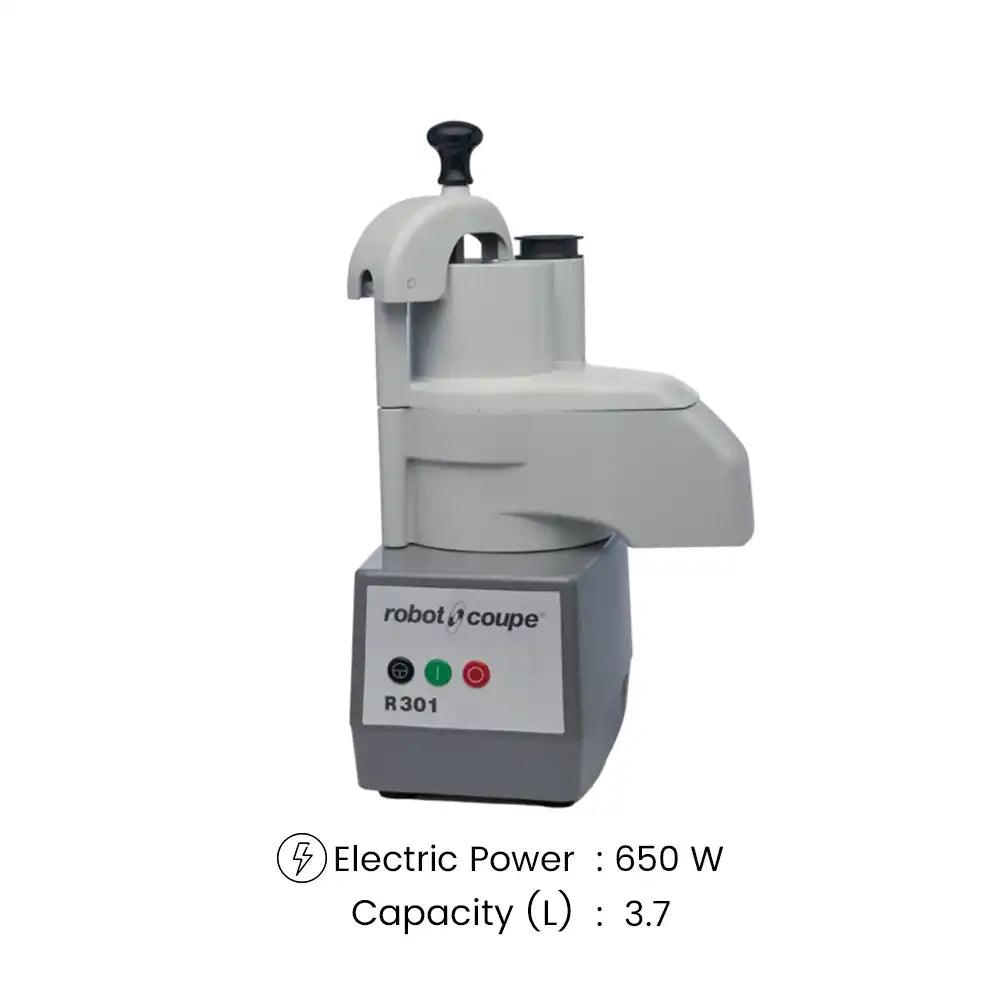Elevate your hotel or restaurant kitchen with the Robot Coupe R301 Stainless Steel Food Processor Cutter and Vegetable Slicer. This compact powerhouse boasts a 3.7 liters bowl capacity, 650 W electric power, and versatile blades for precision. Crafted with durable stainless steel, it ensures longevity and hygiene, streamlining kitchen tasks and allowing chefs to unleash their culinary creativity. Upgrade your kitchen efficiency and serve exceptional dishes with this essential tool.