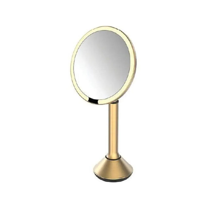 Elevate your beauty routine with the Roomwell Sense 8 Lighted Table Top Magnifying Mirror. This luxurious gold-finished mirror features 1X/5X magnification, adjustable LED lights, and a 90° swivel for precise makeup application. With a 20 cm diameter, it's the perfect on-the-go beauty companion. Illuminate your world, enhance your confidence, and perfect your makeup with this essential beauty tool.