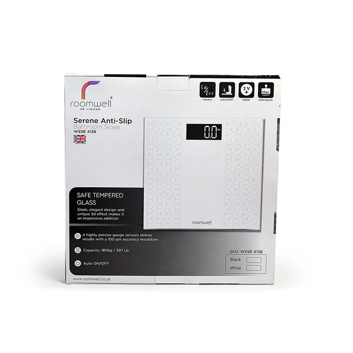 The Roomwell Serene Digital Glass Bathroom Scale offers a sleek, modern design combined with high-tech functionality to provide you with accurate and reliable weight measurements every time you step on. Designed to fit seamlessly into any bathroom, its minimalist White glass surface adds a touch of sophistication to your home while offering all the essential features you need for effective weight tracking.