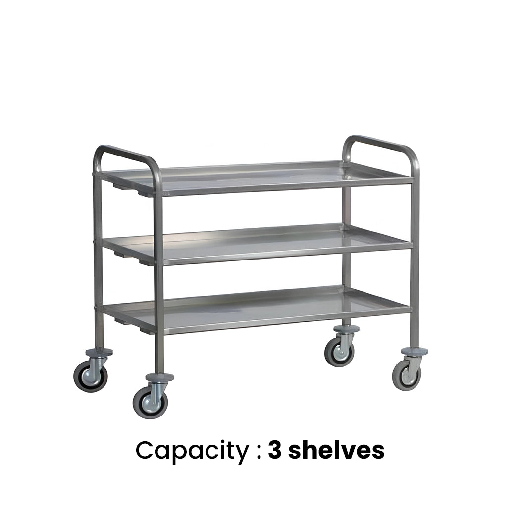 The THS Service Trolley is a versatile and practical solution for food and beverage service. Featuring 3 shelves and robust construction, it ensures efficient storage and transport. With heavy-duty castors and a scotch bright finish, this trolley is durable and easy to clean. Perfect for use in hotels, restaurants, and cafes, it provides a reliable and sturdy solution for serving needs.