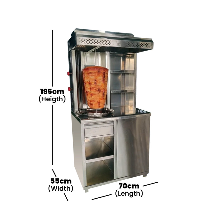 • Cooks shawarma to perfection with 3 high-pressure gas valves and Turkish-made burners.