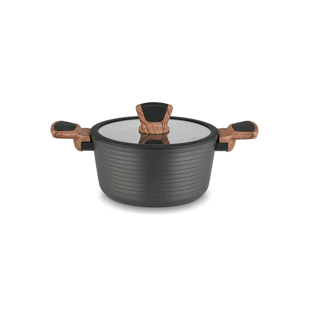 Diamond Series Aluminum Non-Stock Stockpot with Glass Lid in Black/Brown Color, 2.6ltr. Capacity and 20 x 10 cm