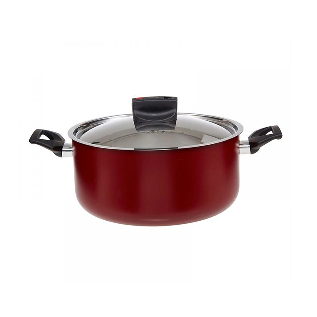 The PrestigeSafecook 26cm/6.2L nonstick stock pot is ideal for hotels and restaurants, with a strong gauge aluminum design for durability. Its dimpled inside surface encourages low-fat cooking, and the eco-friendly nonstick surface makes cleaning simple. The stainless steel lid with vent knob assures safe cooking, making it excellent for industrial kitchens.
