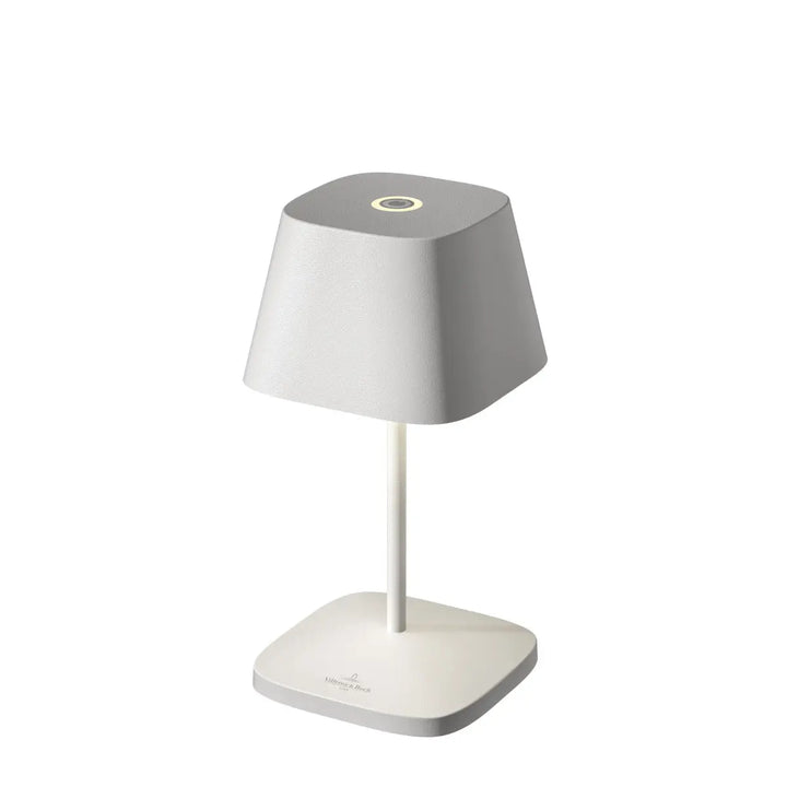 The dimmable table lamp Neapel by Villeroy & Boch. Available in matt and glossy finishes. Made of coated aluminium it looks equally at home in the garden or at your restaurant table. Thanks to the IP65 protection class, the small lamp is an all-rounder for every occasion. The built-in, infinitely variable touch dimmer on the top of the luminaire makes it easy to change the light intensity and colour temperatures.