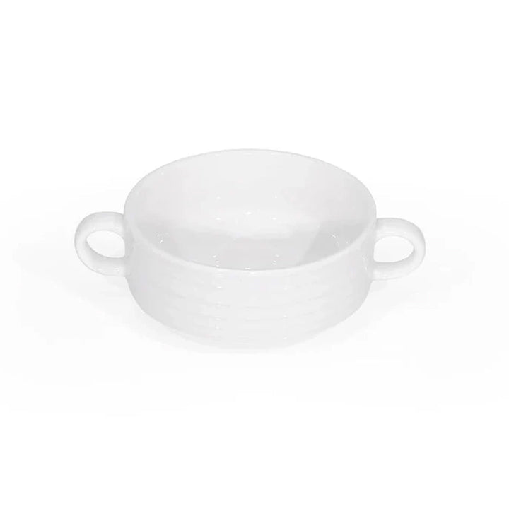 Furtino England Row 13cm/5" White Porcelain Soup Bowl Handled Stacking