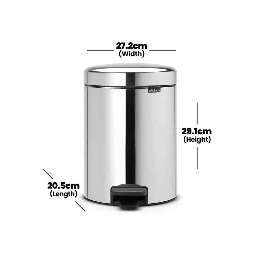 Brabantia Newicon Brilliant Stainless Steel Pedal Bin, 5L With Plastic bucket