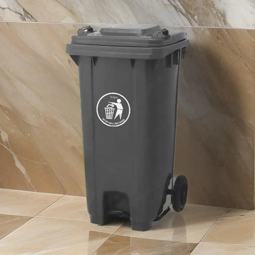 THS Garbage Bin With Wheel And Centre Pedal 120L is a versatile solution for waste collection in both indoor and outdoor settings. Featuring a center pedal, it offers hands-free opening and closing of the lid, ensuring convenience and hygiene. Equipped with wheels and a handle, it allows easy movement of the bin. Its color-coding system facilitates waste segregation, while its washable and UV-resistant design ensures durability and longevity.