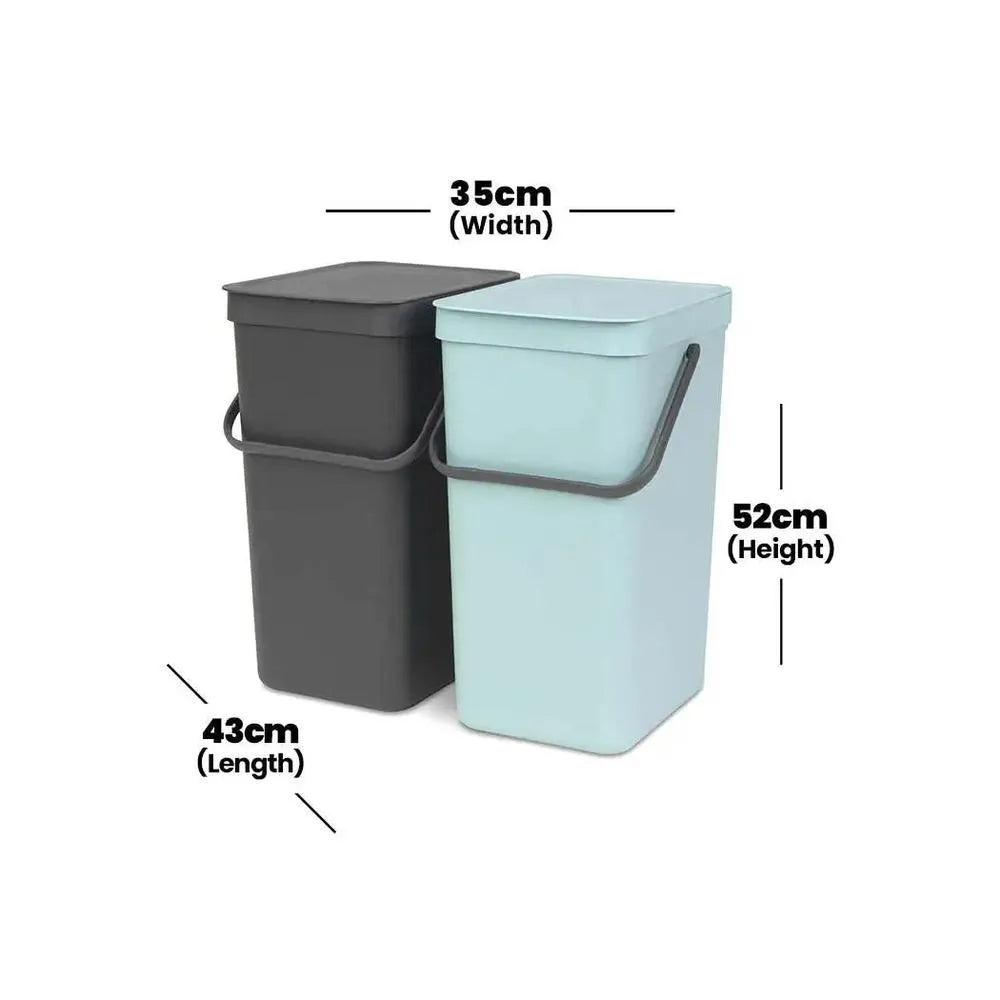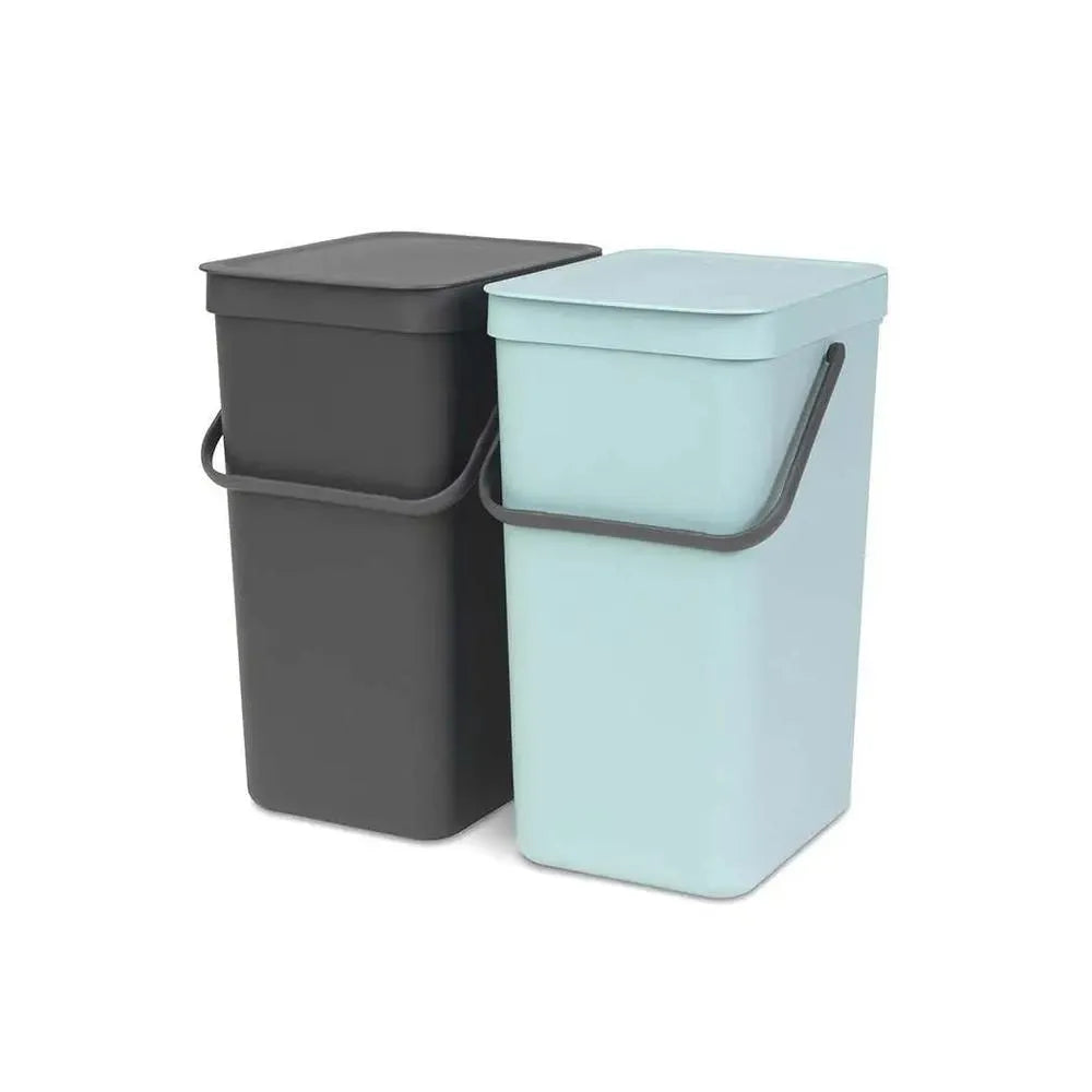 Brabantia Sort & Go Mint & Grey Plastic Bin, 2x12L