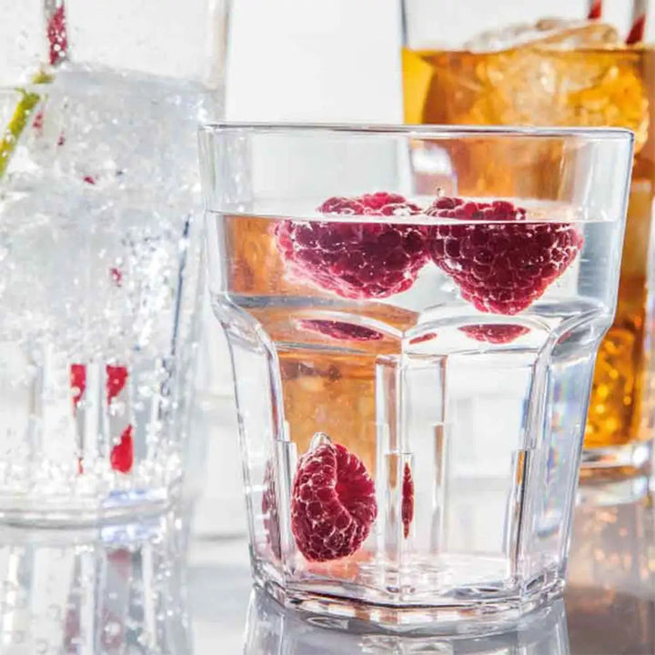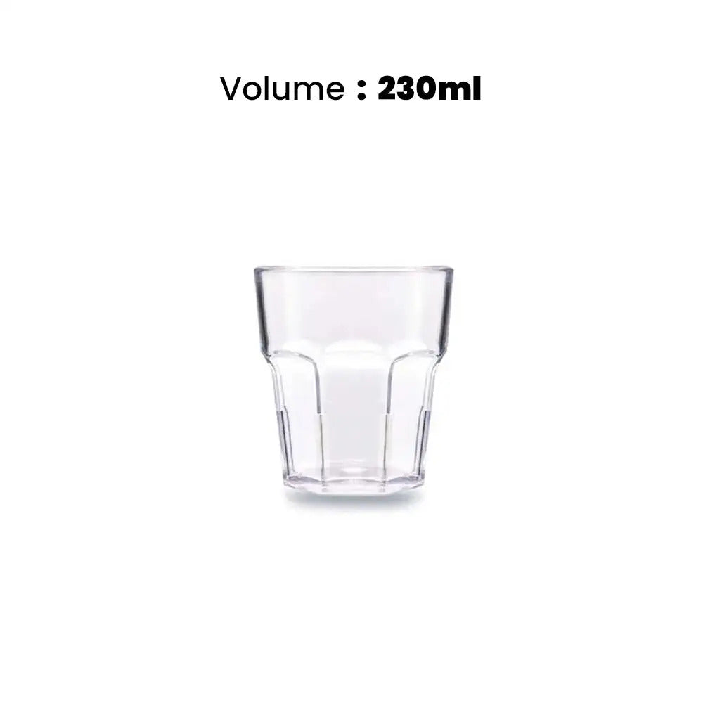 Made of strong polycarbonate, has an amazing inspired design that adds beauty to any decoration. It improves beverage presentation in hotels and restaurants thanks to its clear appearance and superb design. Its 290 ml size, combined with its elegance and durability, provides beauty for an unforgettable dining experience.