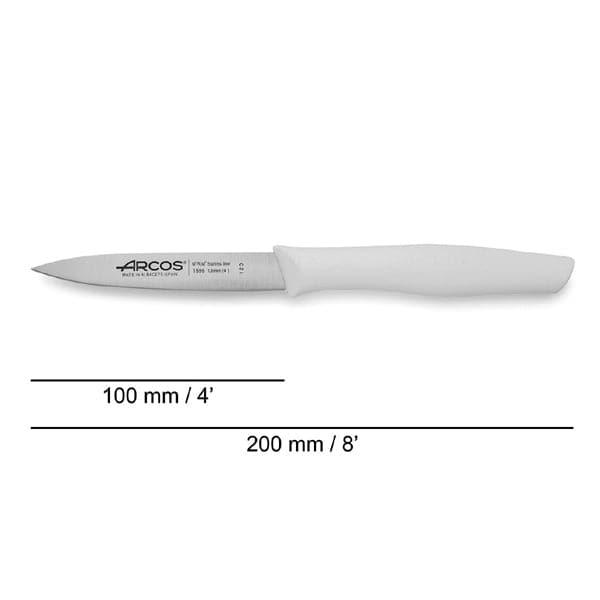 Arcos Paring Knife 4 Inch Stainless Steel. Professional Kitchen Knife for Peeling Fruits and Vegetables, Ergonomic Polyoxymethylene Handle and 100mm Blade, Series Maitre, Color White - thehorecastore