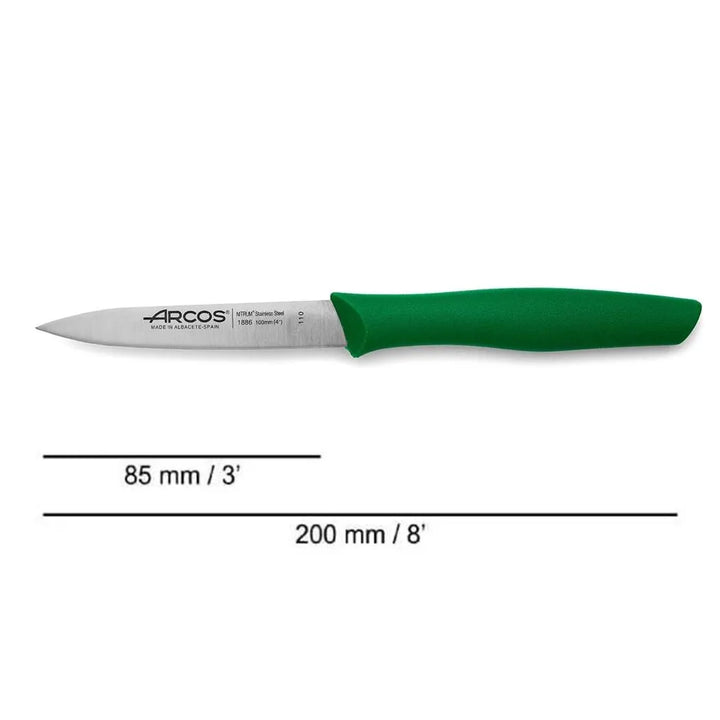 Elevate your culinary skills with the Arcos Paring Knife 3 Inch Stainless Steel, a must-have for every home chef. This professional kitchen knife is designed for precision peeling of fruits and vegetables, featuring an ergonomic polypropylene handle and a 85 mm long blade in a vibrant green hue. Unleash your inner chef and upgrade your kitchen arsenal with this stylish and versatile tool.