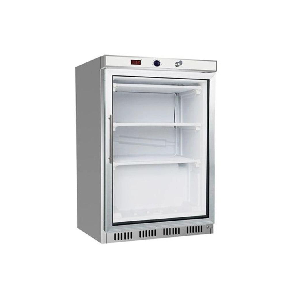 The Forcer G-HF200G Stainless Steel Single Display Freezer, a 130-liter capacity marvel designed for cafes, hotels, and restaurants. This sleek 60 x 60 x 85 cm unit boasts a powerful 150W electric motor, ensuring optimal efficiency. Its stainless steel finish and glass door elevate the visual appeal, making it a statement piece for upscale establishments. Upgrade your space with this compact, modern, and high-performance freezer.