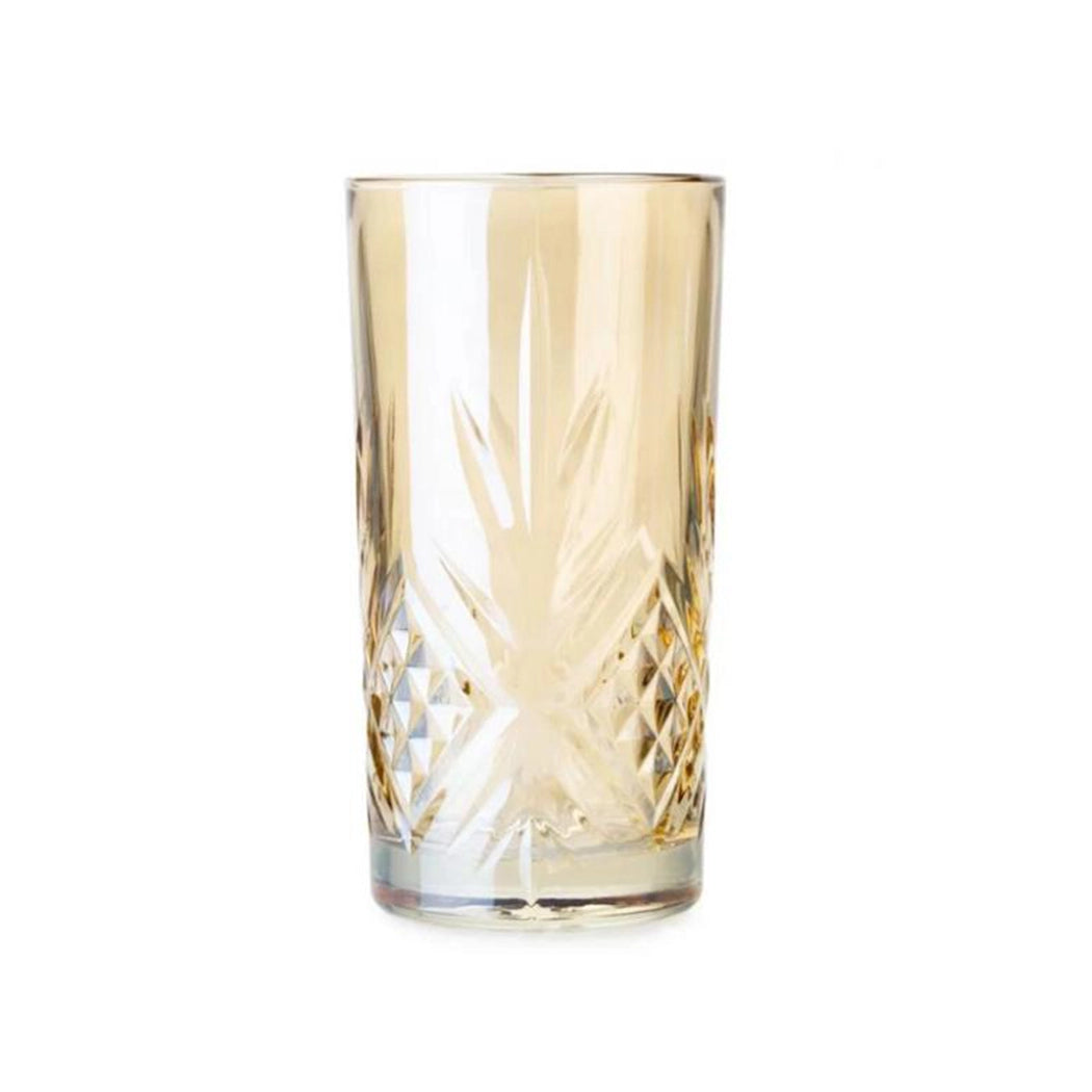 The Luminarc HB Salzburg Golden Honey tumbler set includes 4 glasses, each with a 380ml capacity, made from glass in Europe. Part of the Salzburg collection, these tumblers feature a luxurious gold color, enhancing beverage service in hotels and restaurants with a touch of elegance and sophistication.