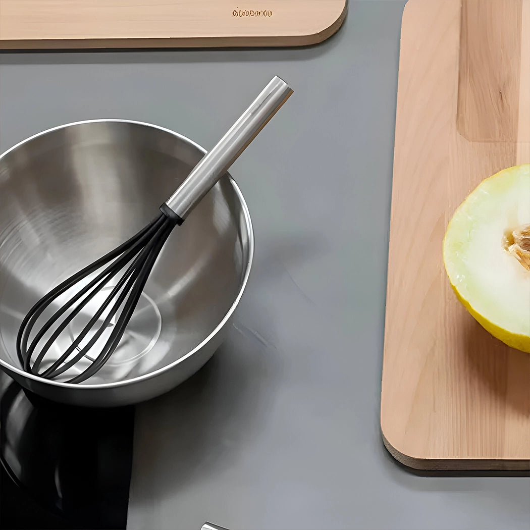 Experience the convenience of a Brabantia Small Steel Whisk in sleek black, meticulously designed to fit into even the smallest of bowls and cups. This compact kitchen tool is perfect for those detailed mixing tasks that larger whisks simply can't handle, making it an indispensable utensil for any kitchen. Crafted for durability and ease of use, it's an essential accessory for the discerning home chef or professional in the hotel, restaurant, and catering industries. The sleek black finish not only adds a touch of elegance but also ensures it fits seamlessly into any kitchen decor.