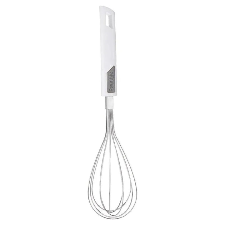 Discover the exceptional versatility of the Prestige Classic Medium Whisk in white. This whisk is a top-tier choice for achieving quick and efficient whisking results. Its refined design seamlessly integrates into the ambiance of hotels, restaurants, or catering establishments. Weighing a mere 340g, this lightweight kitchen tool boasts an ergonomic grip that provides unparalleled comfort even during extensive food preparation sessions.