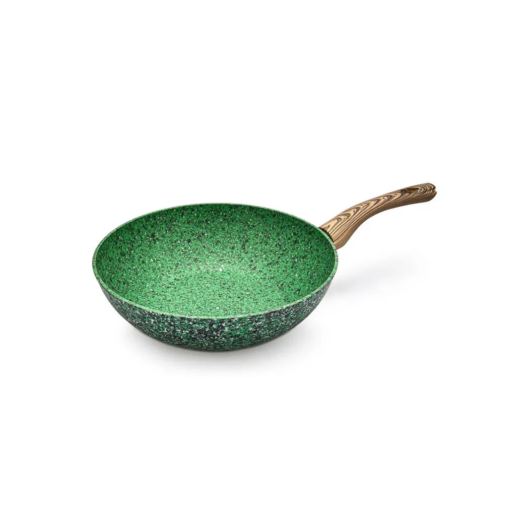 Malachite Series Aluminum Non-Stick Wok Pan with Induction Bottom in Green Color, 24 x 7 cm