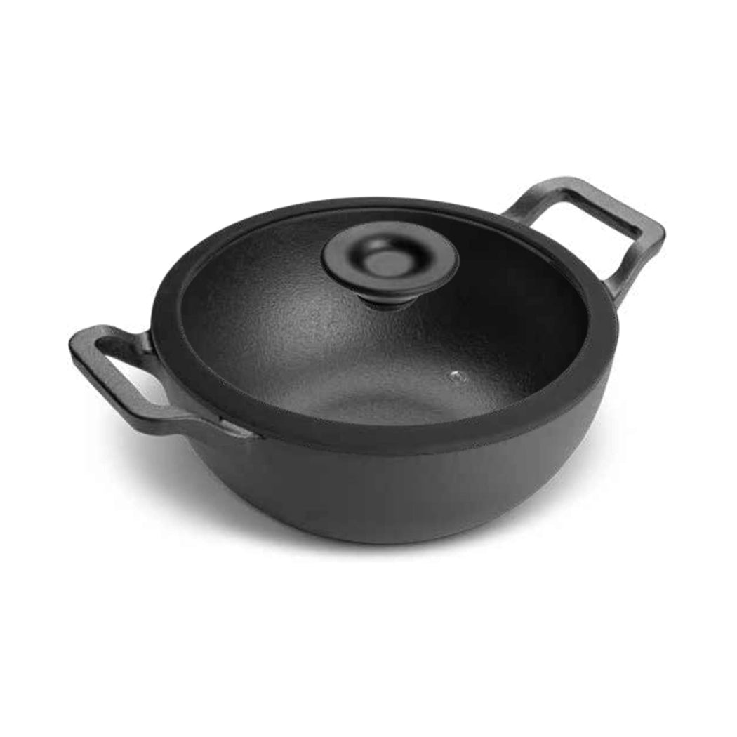 Prestige Cast Iron 20 cm Kadai With Glass Lid, Black