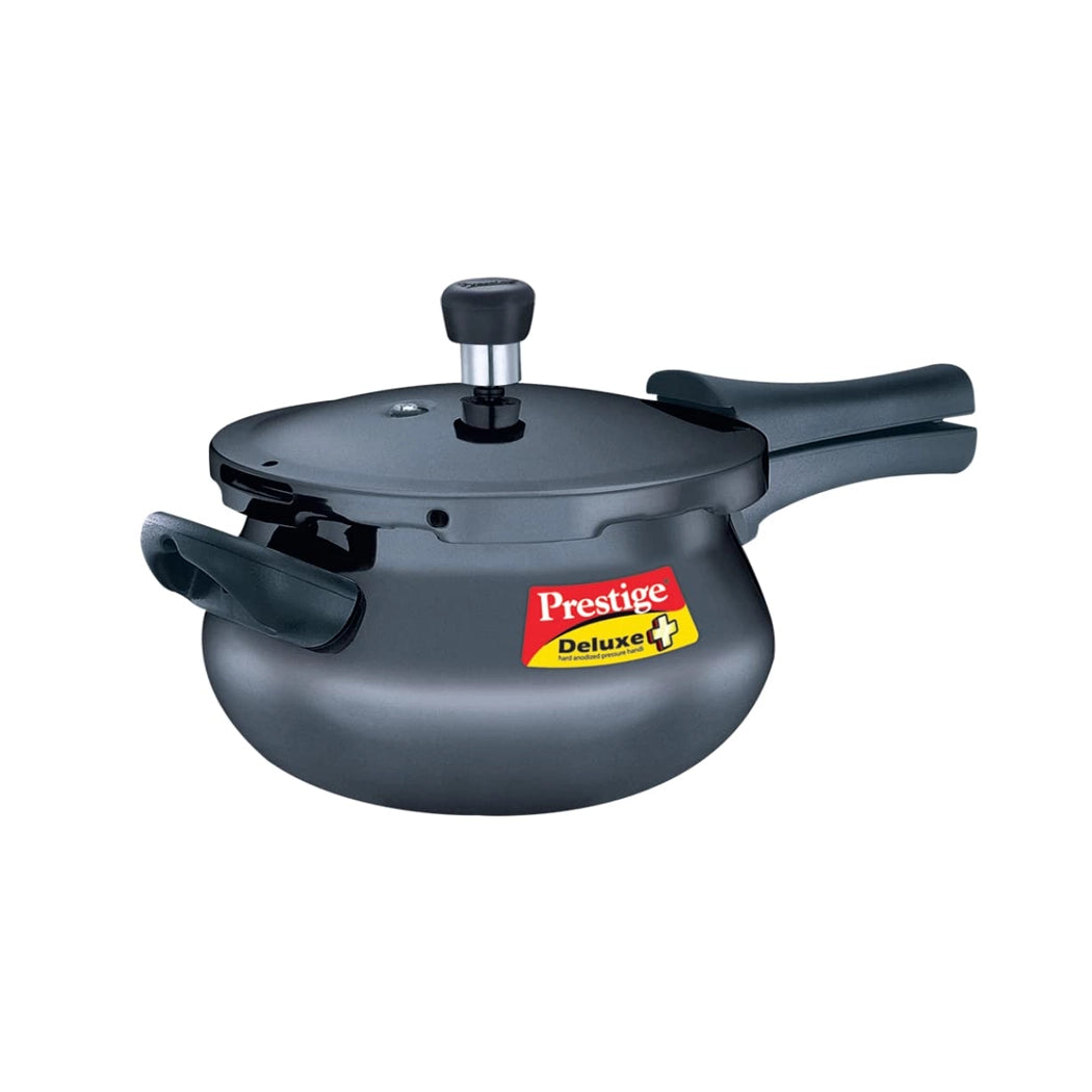 • Prestige pressure cooker has a 5-litre capacity and hard anodized finish.