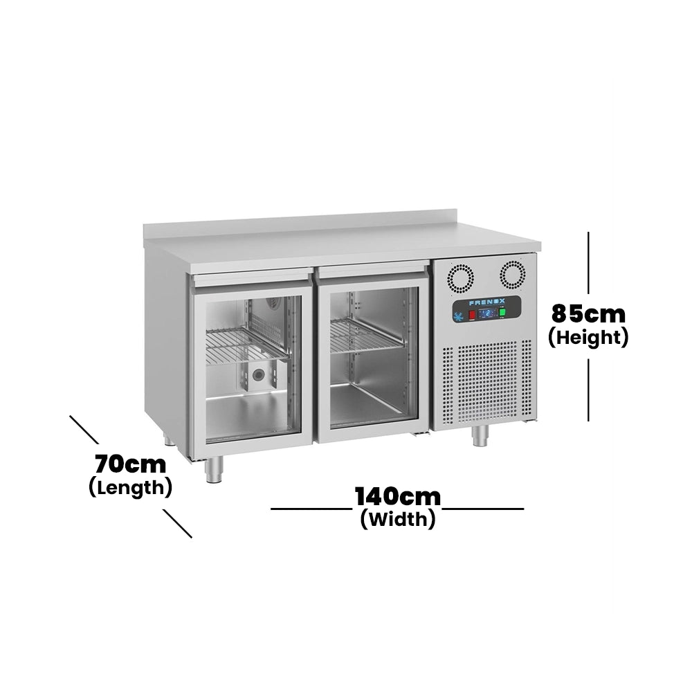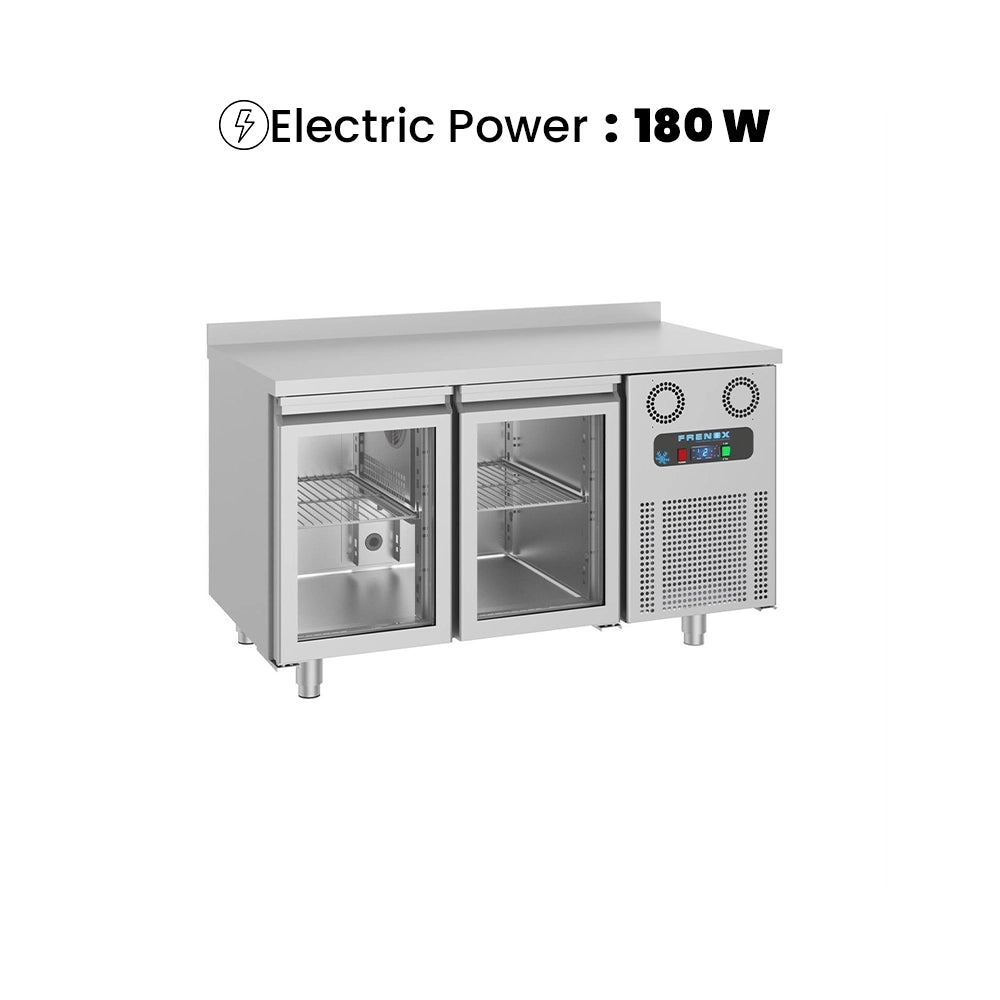 The Frenox 2-Door Horizontal Refrigerator, designed for hotels, restaurants, and caterers, has exceptional refrigeration performance. Encased in sturdy stainless steel, it has a 281L capacity and an excellent temperature range of -2 to +8℃. It is 140x70x85 cm and has 50mm insulation, ensuring efficiency and energy savings. It has a twin racking system and runs on 220V/50Hz, making it environmentally sustainable with an energy class E certification. Simplify installation with dimensions of 150x80x100 cm and a weight of 145 kg.