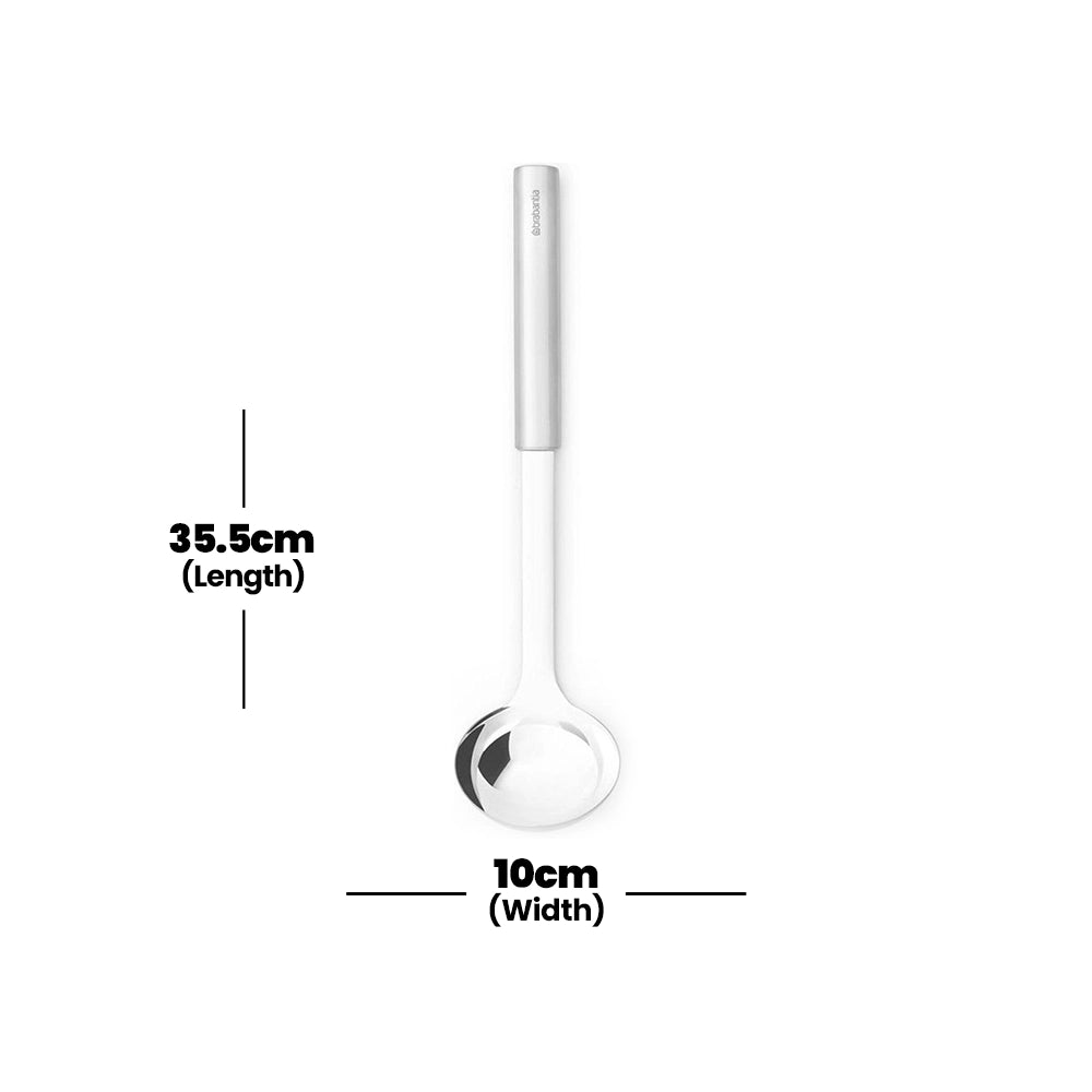 Discover the epitome of elegance and functionality with the Brabantia Stainless Steel Soup Ladle. Designed specifically for the discerning culinary professionals in hotels, restaurants, and catering services, this premium ladle combines sophisticated design with operational excellence. The sleek stainless steel construction ensures durability and ease of cleaning, while its carefully calibrated bowl allows for smooth, spill-free serving of soups and broths. Enhance your serving tools collection and impress your guests with both style and efficiency.