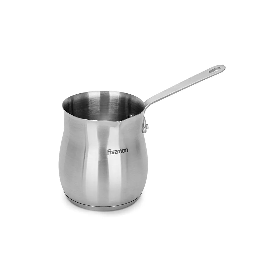 The Fissman Coffee Pot with 810ml capacity and induction bottom is crafted from premium 18/10 stainless steel (INOX304), ensuring both durability and safety. Its multi-layer capsule bottom, incorporating aluminum and induction layers, ensures even heat distribution across all stove types, enhancing the brewing process for a perfect cup of coffee. Equipped with a convenient spout for seamless pouring and a robust handle for secure handling, this coffee pot combines functionality with elegance. Ideal for hospitality settings, it offers heat and corrosion resistance, making it a reliable choice for brewing and serving coffee with ease.