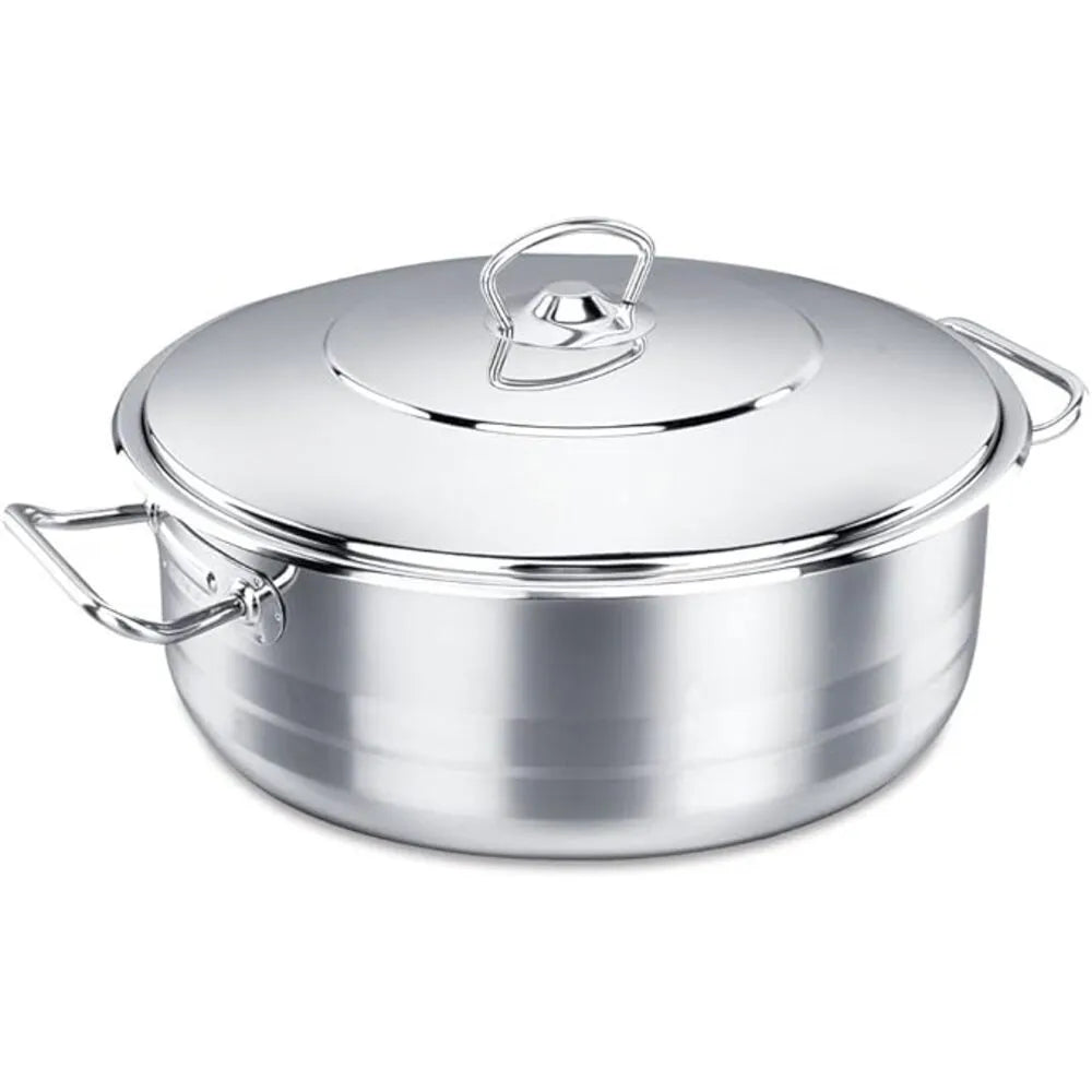 The Korkmaz Mega Extra Low Casserole 36x10 cm / 10.0 is crafted from polished stainless steel, offering both durability and a stylish appearance. With a generous capacity of 10 liters and sturdy construction, it's perfect for preparing large quantities of food, making it ideal for use in professional kitchens and hospitality settings. This casserole comes complete with a cover, enhancing its versatility for various cooking techniques and ensuring it meets the demands of commercial cooking environments with ease.