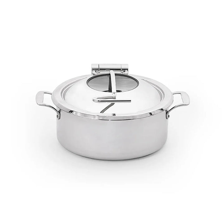 Wundermaxx Lächeln Induction Chafing Dish Set with Glass Lid (Pot+Lid+Insert) ø 30 x H 18.5 cm, Capacity 4 Litres, Color Silver