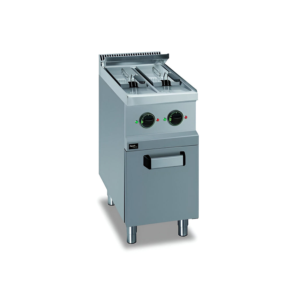 • With dimensions of 400 mm in length, 700 mm in width, and 850 mm in height, and a net weight of 37 kg, the fryer is designed for efficient use of space while delivering robust performance.