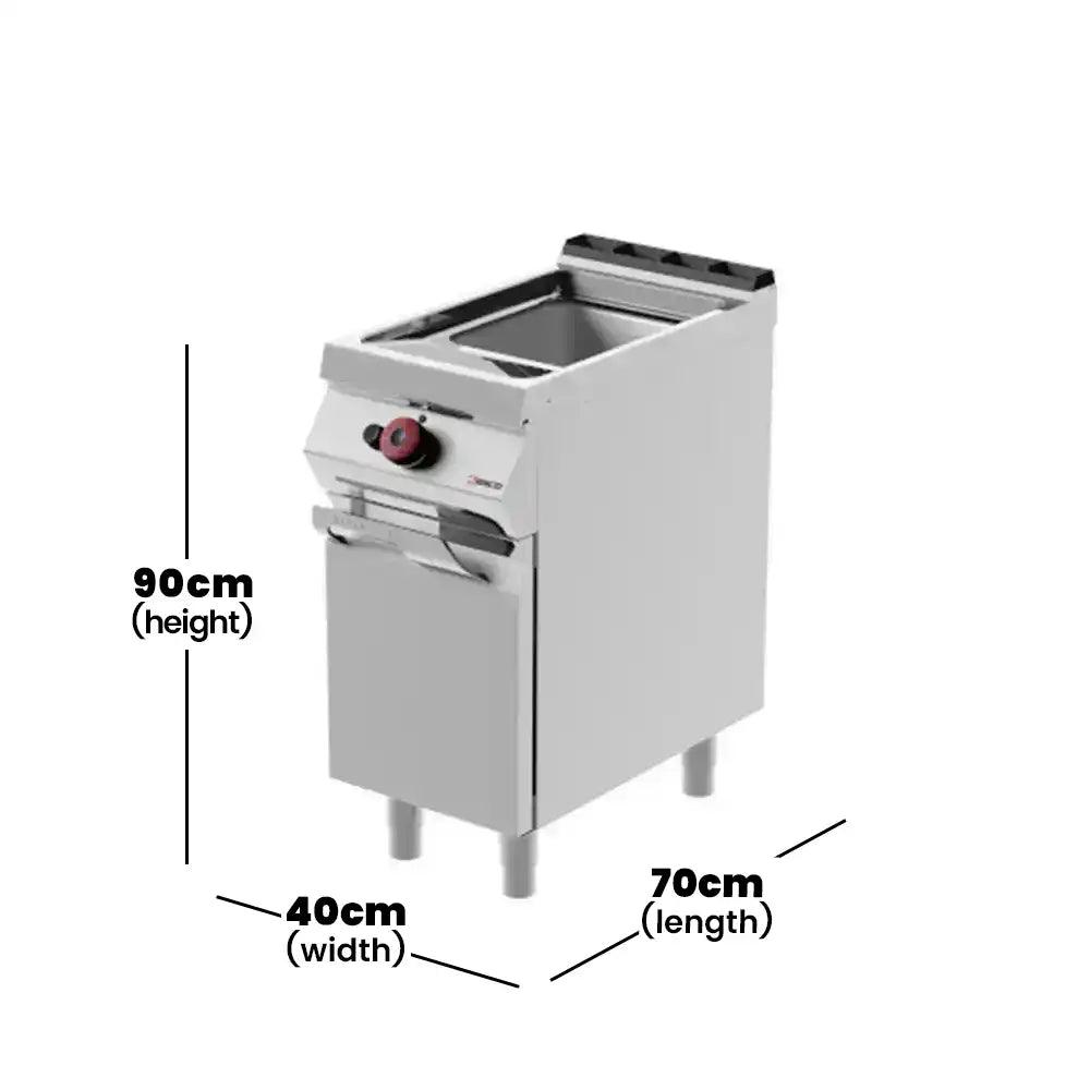 The Desco FRG71M00 Stainless Steel Gas Fryer, a culinary game-changer for hotels and restaurants. With an 11-liter capacity and 10 kW power, this compact appliance combines efficiency and elegance. Its deep-formed surface, rounded edges, and durable stainless steel construction redefine durability, ensuring it meets the demands of professional kitchens. Elevate your culinary experience, maximize space, and prioritize safety with the Desco FRG71M00 – the perfect solution for chefs aiming for excellence in every dish.