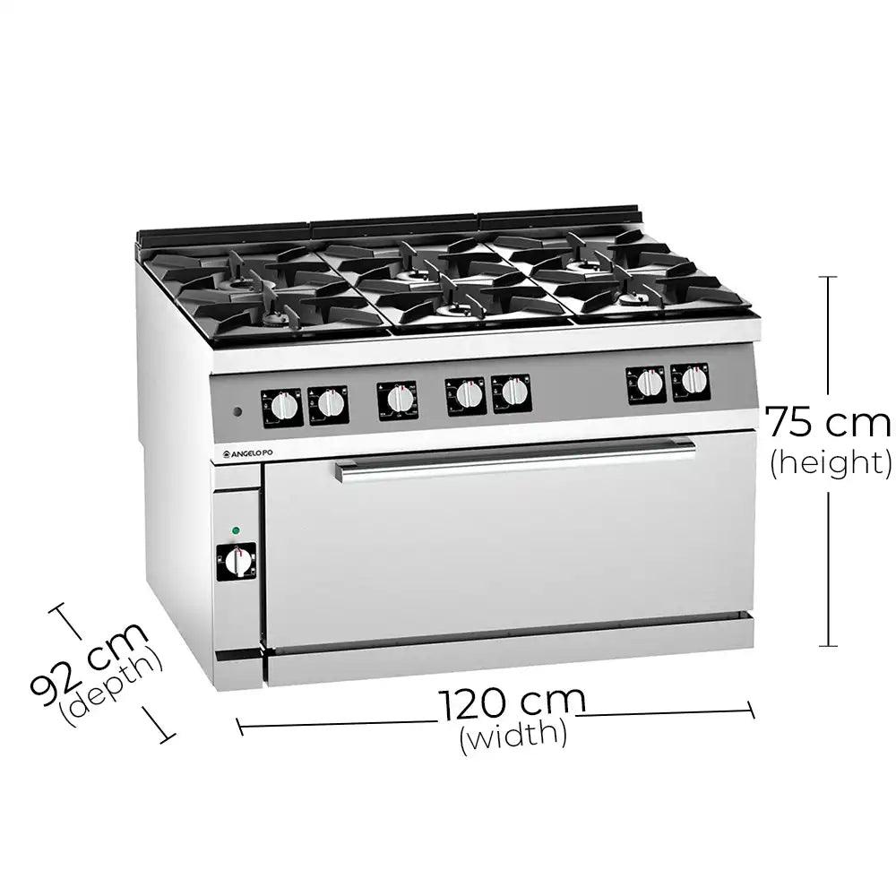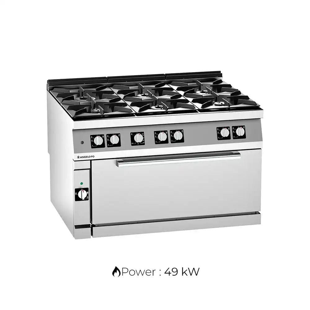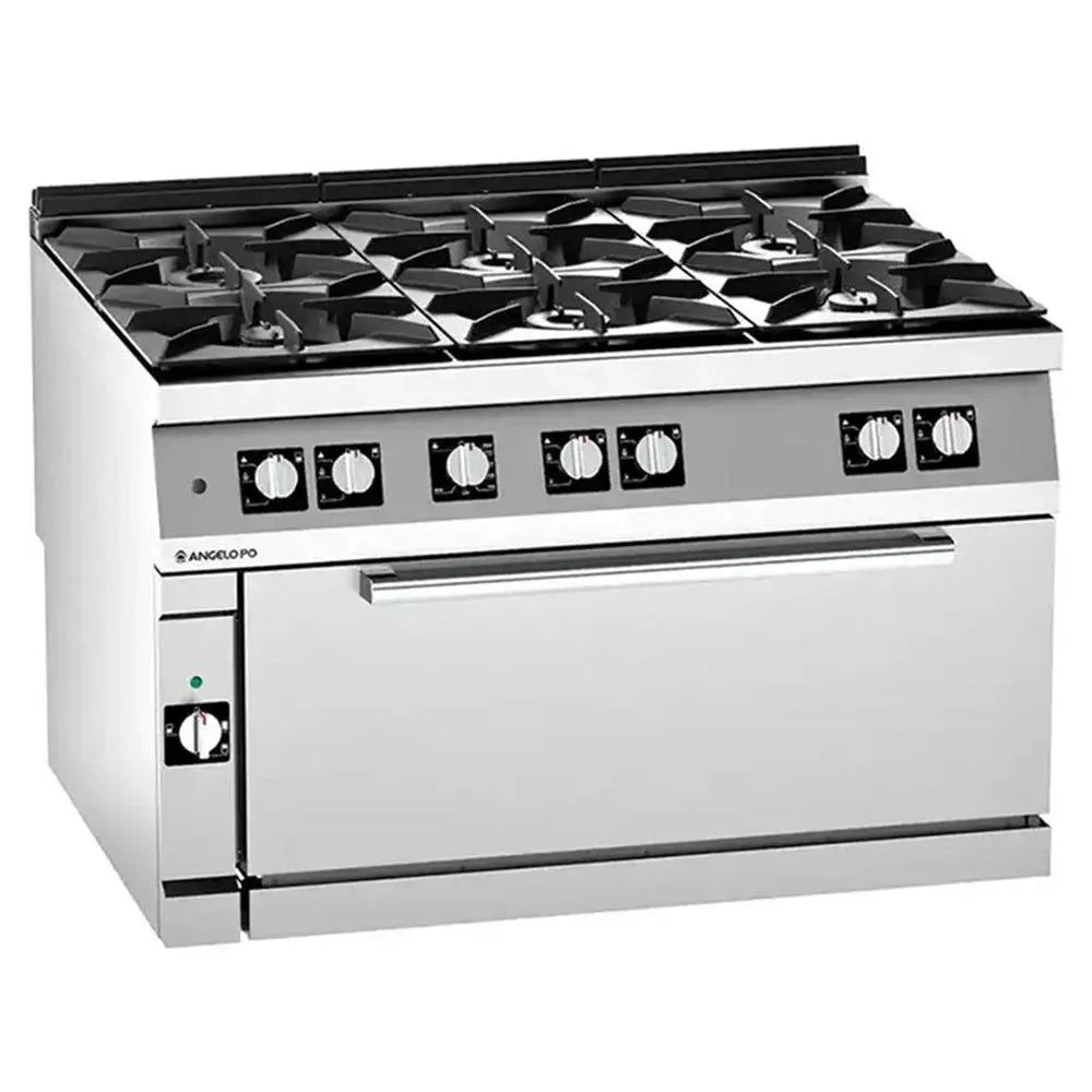 Angelo Po 2N1FAGF Gas Cooking Range 6 Burners With Large Gas Static Oven, Gas power 49 kW, 120 X 92 X 75 cm - HorecaStore