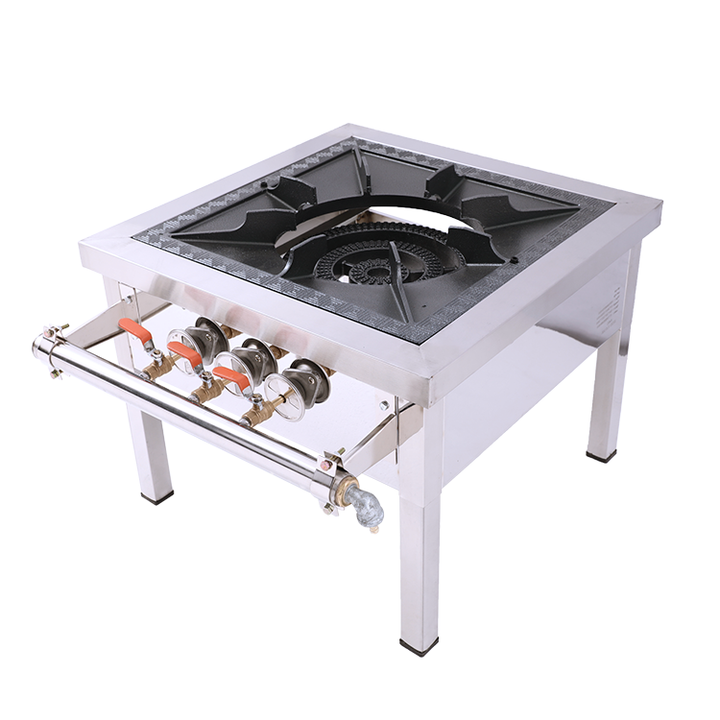 The Al Razana Stock Pot Stove is a professional cooking solution. With its high-pressure burners and gas valves, it provides rapid and efficient cooking capabilities. Made of durable stainless steel, this stove is perfect for commercial kitchens and restaurants. Its compact design makes it ideal for heavy-duty cooking applications, offering a reliable and convenient cooking experience.