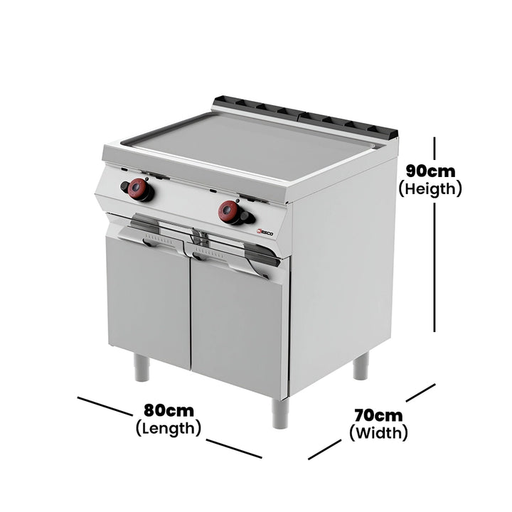 The Desco Stainless Steel Gas Grill Double Plate is a professional cooking solution. With its smooth plate gas grill and cabinet storage, it provides convenience and efficiency. Its stainless steel construction ensures durability and easy cleaning. Perfect for restaurants, cafes, and food service establishments, this gas grill offers reliable performance and versatility.