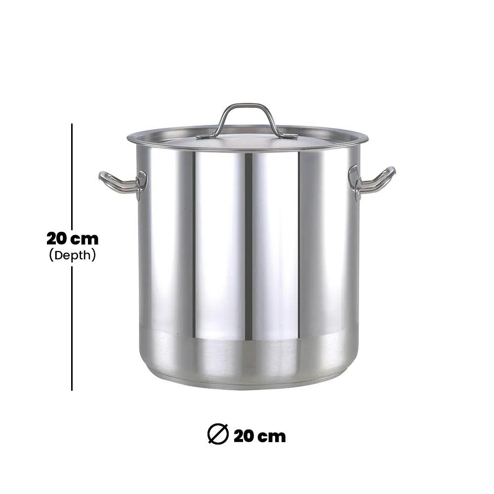 Designed to meet the high demands of the hotel, restaurant, and catering industry, the Pradeep stainless steel cookpot offers unrivaled durability and thermal efficiency. With a 20cm diameter and matching height, this 6-liter culinary necessity ensures even cooking for a variety of dishes. Its professional-grade construction is designed to withstand frequent use in bustling kitchen environments.