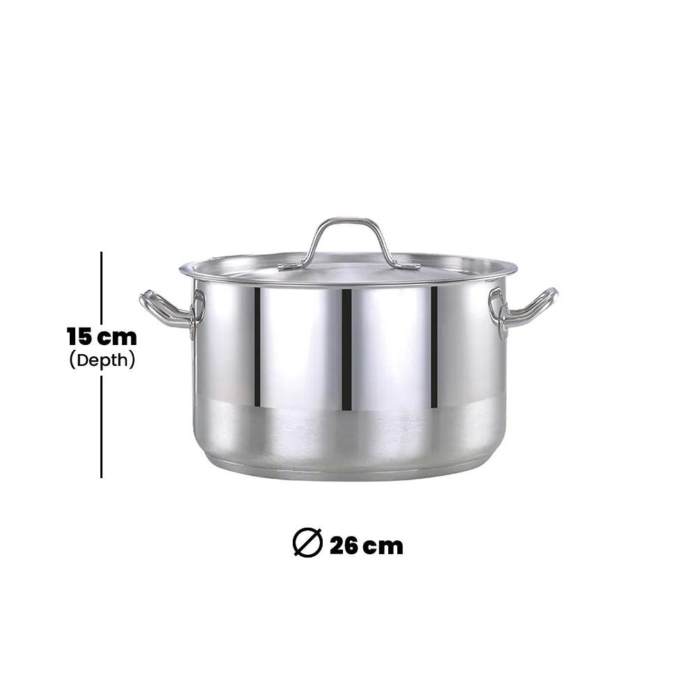 Engineered for the bustling demands of hotels, restaurants, and catering services, this robust Pradeep Professional Cookpot is exclusively designed in stainless steel. Measuring 26cm in diameter and 15cm in height, with a generous capacity of 7.5 liters, it's ideal for large-scale cooking. Its professional-grade materials ensure durability and seamless cooking experiences.