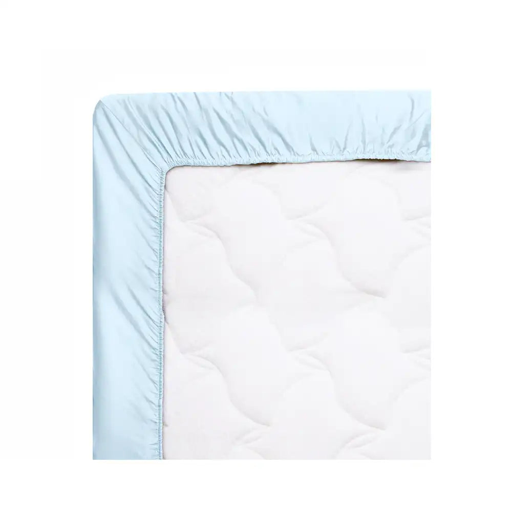 Exquisitely crafted for the hospitality industry, this Giza Cotton fitted sheet in baby blue combines a luxurious feel with practical detail. With a 300 thread count, 100% cotton sateen fabric, it offers superior comfort while ensuring durability. Its unique 360° elasticized design guarantees a secure fit for mattresses, providing both elegance and ease of use for hotels, restaurants, and caterers.