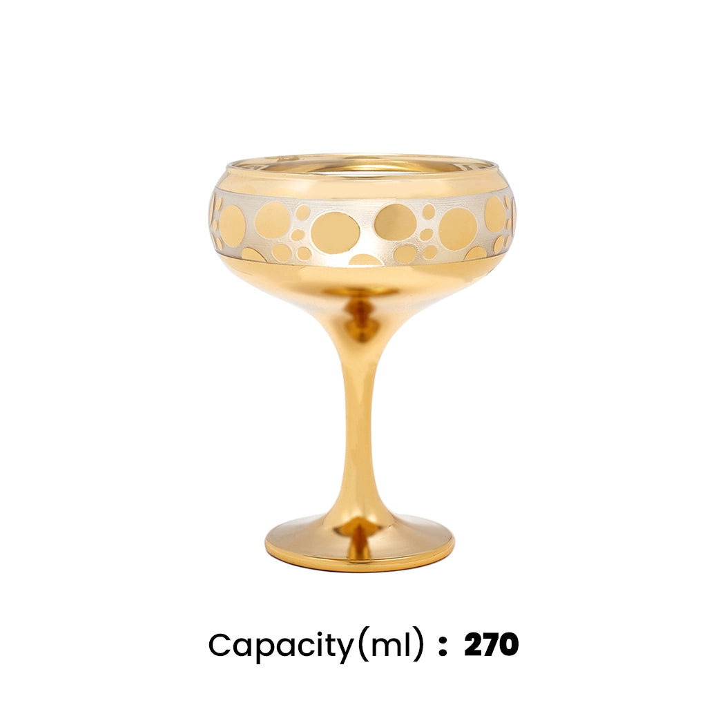 The GlaSStar Stone + pr lacquer set of 3 vases for ice cream bowls from Europe features a luxurious gold finish. Ideal for hotels and restaurants, they enhance dessert presentations with elegance. Made from glass, they add sophistication to tabletops, perfect for serving ice cream or desserts with style and flair.