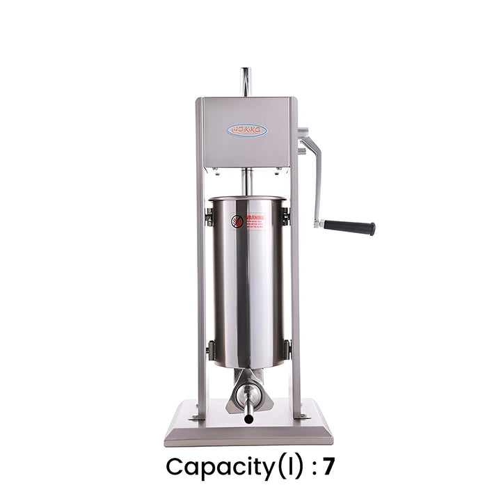 The THS Manual Sausage Filler is a high-quality, manually operated sausage filler designed for commercial use. Made from stainless steel, it ensures durability and ease of cleaning. With its vertical design and easy operation, it's perfect for processing sausages efficiently. Ideal for small-scale meat processing operations, this filler provides excellent performance and durability, making it a valuable asset in any kitchen.