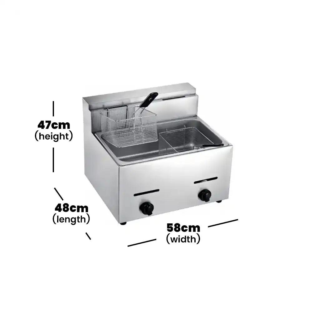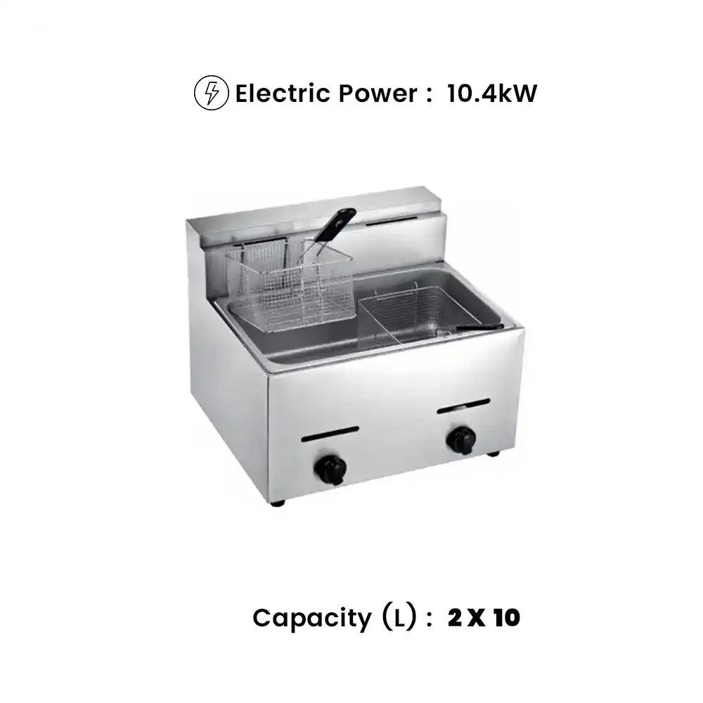 Upgrade your culinary space with THS GF-102 Gas Fryer Double, ideal for cafes, hotels, and restaurants. This stainless steel masterpiece, boasting heavy-duty elements and precise temperature control, transforms kitchens into efficient hubs of flavor. With 2 x 10-liter capacity, it's the key to consistent and mouthwatering dishes, ensuring a seamless cooking experience and elevating your establishment's culinary prowess.