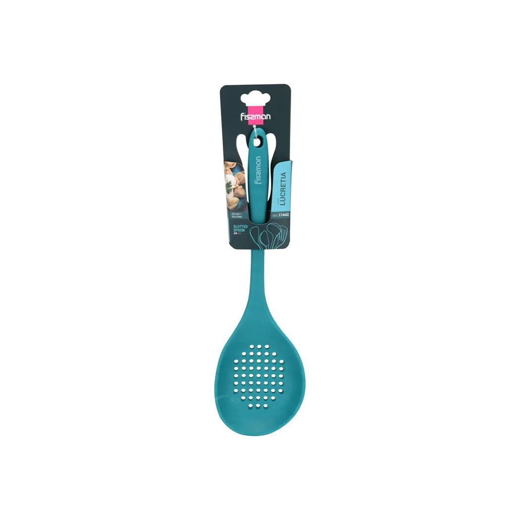The Fissman Slotted Spoon from the Lucretia Series, measuring 34cm, is ideal for use in the hospitality industry. Crafted from 100% food-grade Material, it is non-toxic, odorless, and heat-resistant up to 230°C. This versatile slotted spoon is perfect for draining and serving hot foods without damaging cookware surfaces. The nylon rod inside ensures durability and shape retention, while the transparent silicone coating adds a stylish touch. Featuring a handle hole for easy storage, this spoon is dirt-resistant, easy to clean, and safe for health and the environment.