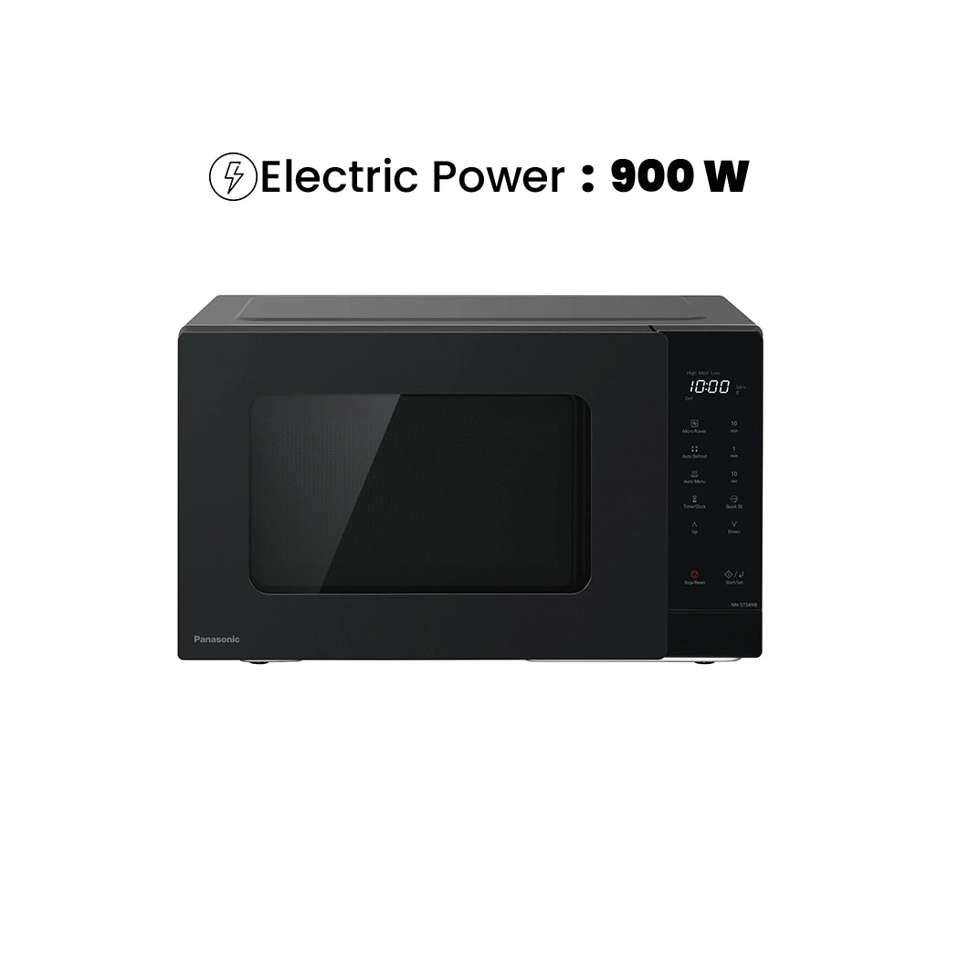 Utilize the Panasonic 900 Watt 25 Liter Solo Microwave Oven to further enhance your cooking experience. Get exact cooking power adjustments for flawless meals in just 5 easy steps. Discover a variety of cooking possibilities with ease thanks to the 10 pre-programmed auto menus. Enjoy a smooth and rapid defrosting for increased everyday work. The microwave's small size maximizes kitchen space while its simple design adds style. Your cooking convenience is increased by practical features like the push-to-open door button.