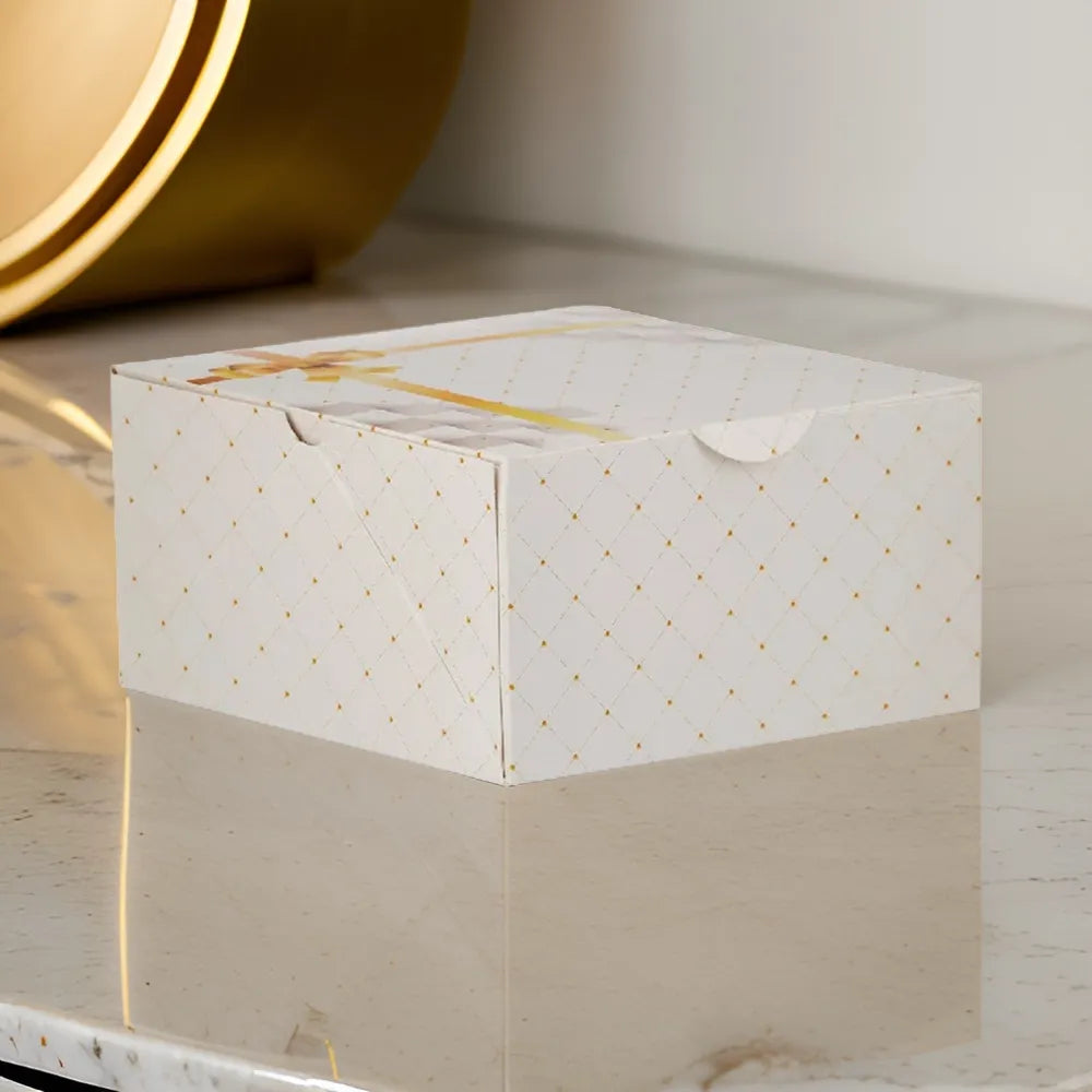 • Available in a pack of 100 printed paper cake boxes, each measuring up to 15 x 15 x 8 cm